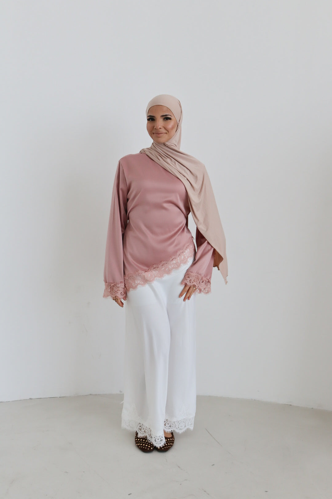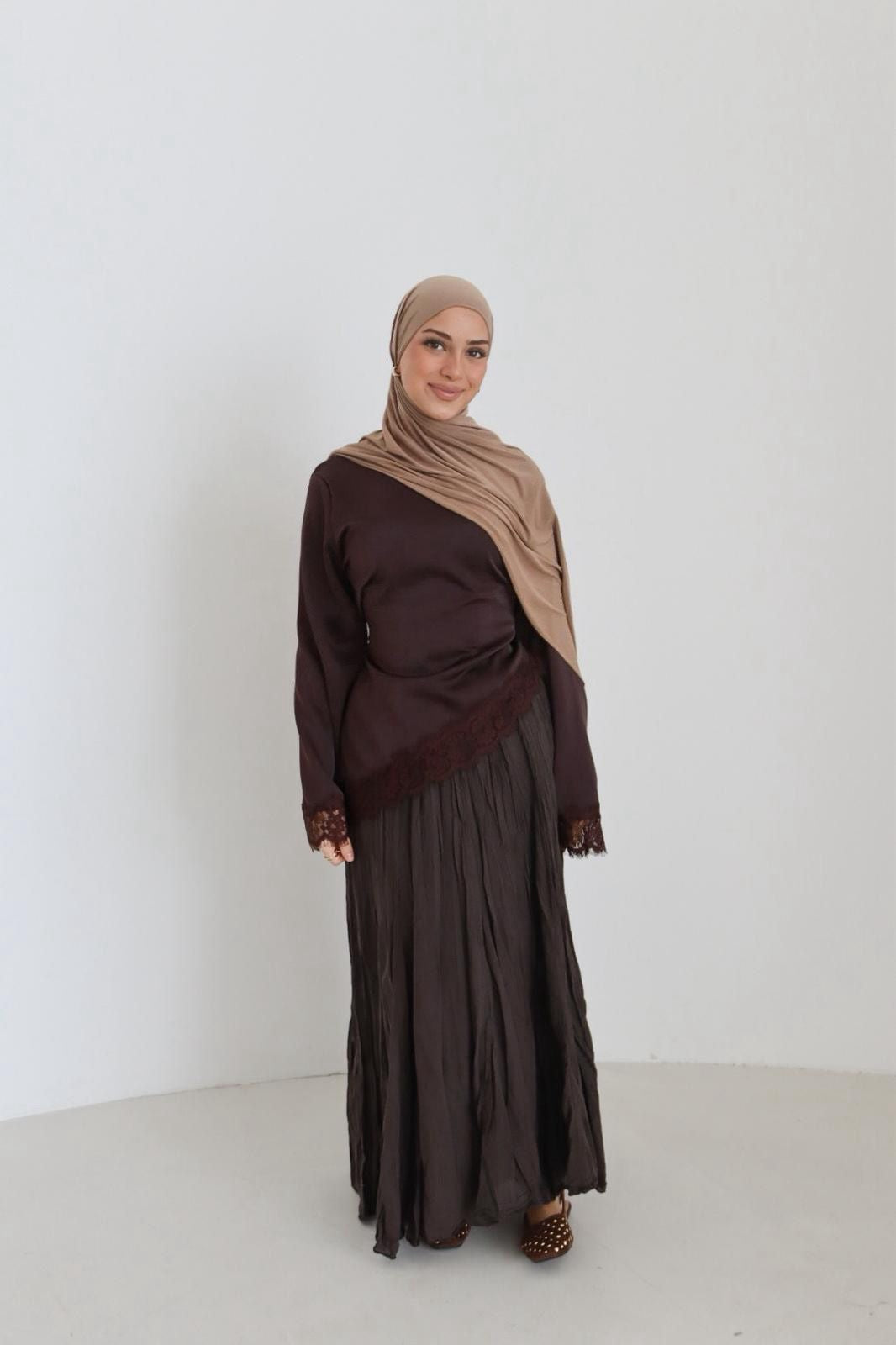 Das Modell ist 1,65 m groß und trägt die Einheitsgröße.