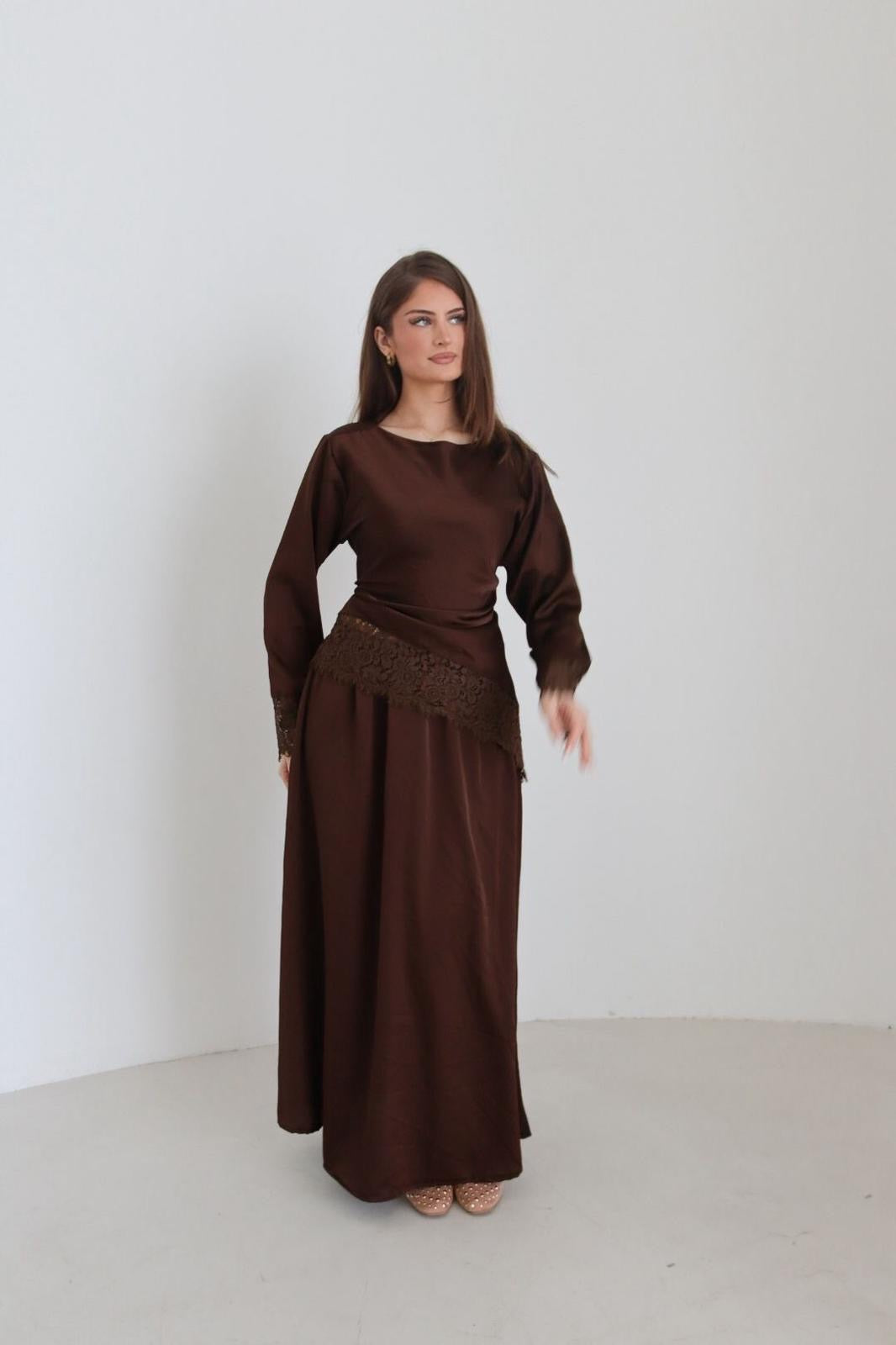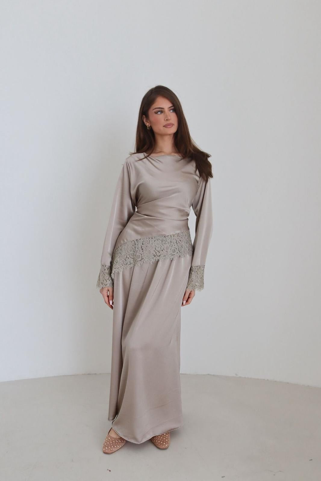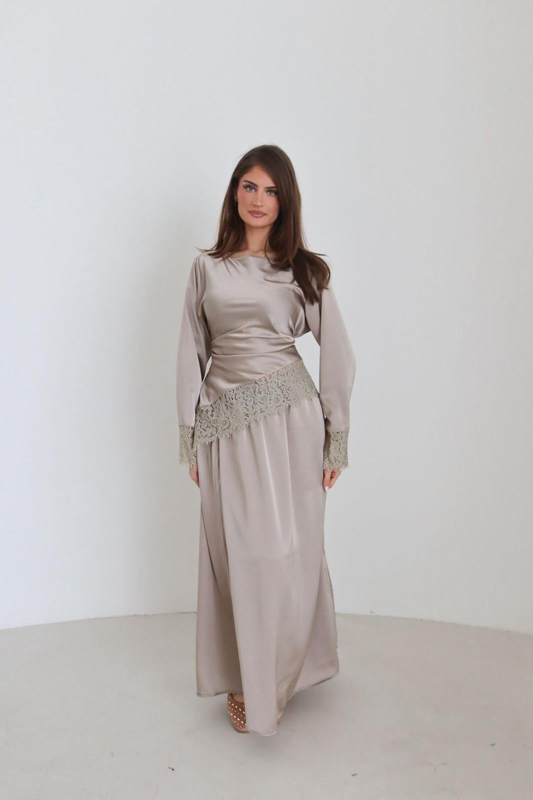 Das Modell ist 1,75m groß und trägt die Einheitsgröße.